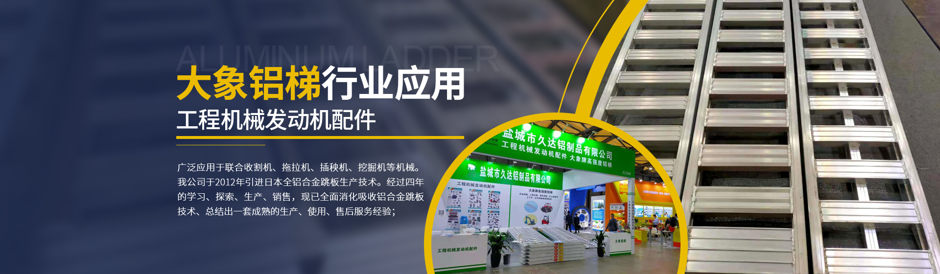 廣泛應用于聯合收割機、拖拉機、插秧機、挖掘機等機械建湖縣久達鋁制品有限公司引進日本鋁合金跳板生產技術,專業生產高強度鋁合金跳板,廣泛應用于聯合收割機、拖拉機、插秧機、挖掘機等機械。 我公司于2012年引進日本全鋁合金跳板生產技術。經過四年的學習、探索、生產、銷售,現已全面消化吸收鋁合金跳板技術、總結出一套成熟的生產、使用、售后服務經驗;為提高產品質量,加大設備投入,購買歐洲進口的鋁合金焊接設備和切割設備,保證產品的焊接強度和精度;結合中國收割機作業量大、作業條件復雜、中國收割機更重等特點,生產出更適合中國國情的高強度鋁合金跳板,承載力更強,抗疲勞效果更好,使用周期更長,同等使用條件下是市場上仿制產品使用壽命的1.5倍以上。大象牌鋁梯成為中國鋁梯行業馳名品牌。